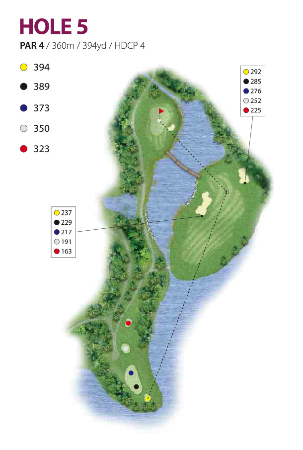 Khung cảnh đẹp tự nhiên được tận dụng để tạo tính liên tục và nhất quán trong thiết kế tổng thể. Các độ cao và diện mạo khác nhau được kết hợp tinh vi tạo nên một sân gôn chân thực và đầy tự nhiên.